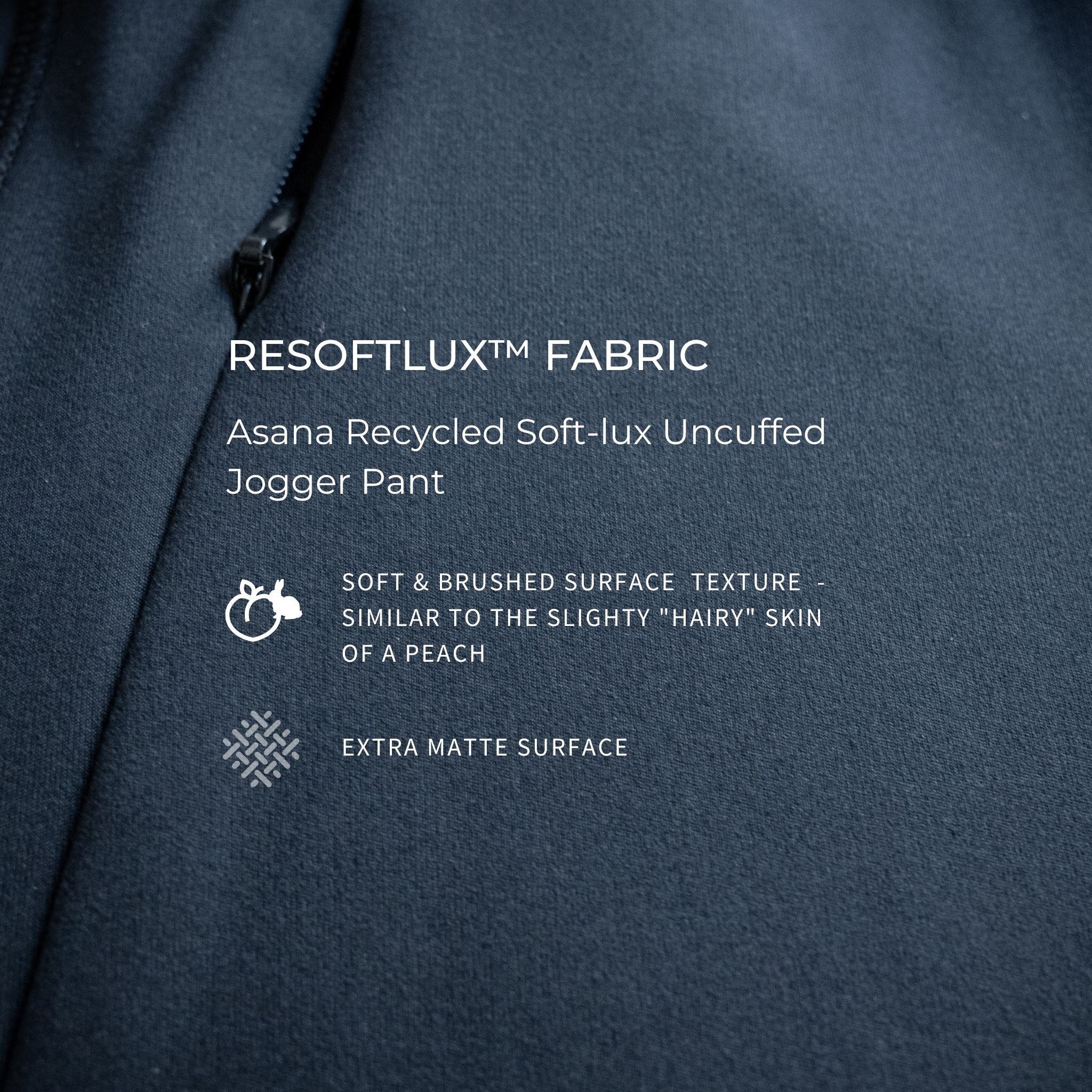 The brushed surface of the asana uncuffed jogger pant provides it with a "peach-like" feel which involves small hairs that protrude from the surface.