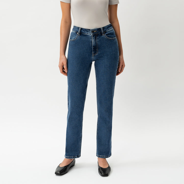 Experience the classic look of denim with the comfort of incredible stretch. Our high-waisted, straight-leg jeans are crafted from a proprietary denim blend that’s both very stretchy and thick, providing the feel of traditional denim with added flexibility. Versatile and perfect for everyday wear, these jeans are a must-have in your wardrobe.